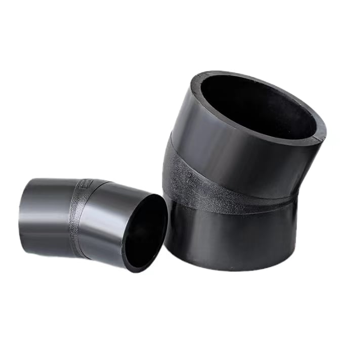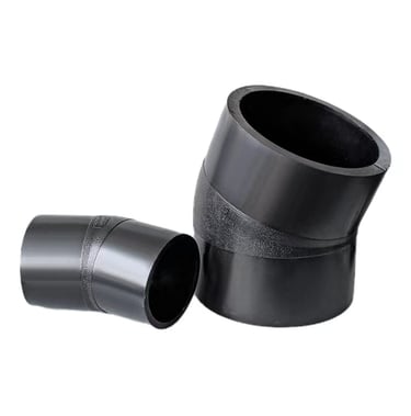 HDPE 22.5 degree elbow butt fusion fittings are produced using an injection mould and are the same size on both sides. The raw material, PE100 grade High Density Polyethylene (HDPE), is joined to the HDPE pipe using the butt fusion welding method.