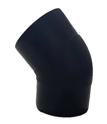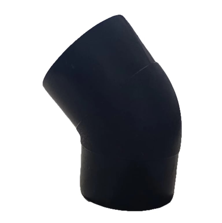 HDPE 45 degree elbow butt fusion fittings are produced using an injection mould and are the same size on both sides. The raw material, PE100 grade High Density Polyethylene (HDPE), is joined to the HDPE pipe using the butt fusion welding method.
