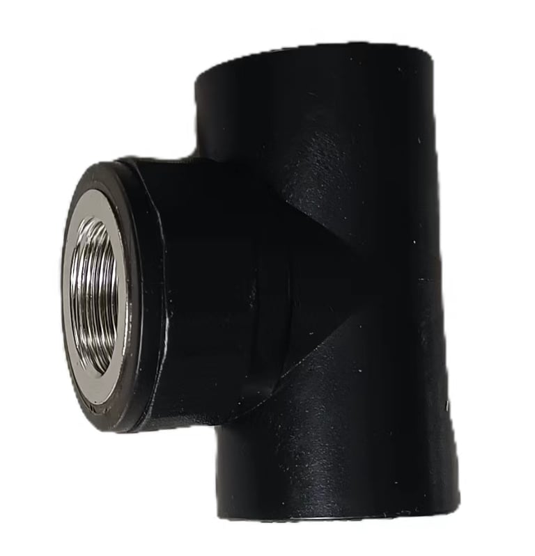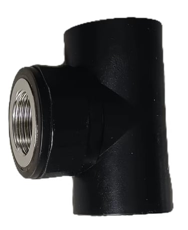 HDPE female tee socket heat fusion fittings are produced using injection moulds and stainless steel threads to BSPT standards. The raw material, PE100 grade High Density Polyethylene (HDPE), is used to join HDPE pipes by socket heat fusion welding.
