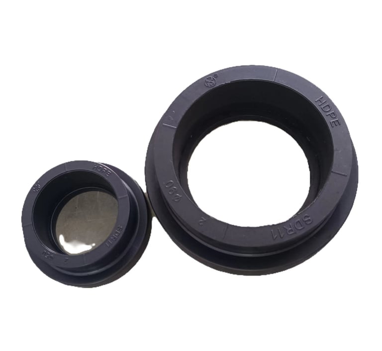 HDPE socket fusion end caps are produced using injection moulding. The raw material, PE100 grade High Density Polyethylene (HDPE), is joined to the HDPE pipe by socket fusion welding.