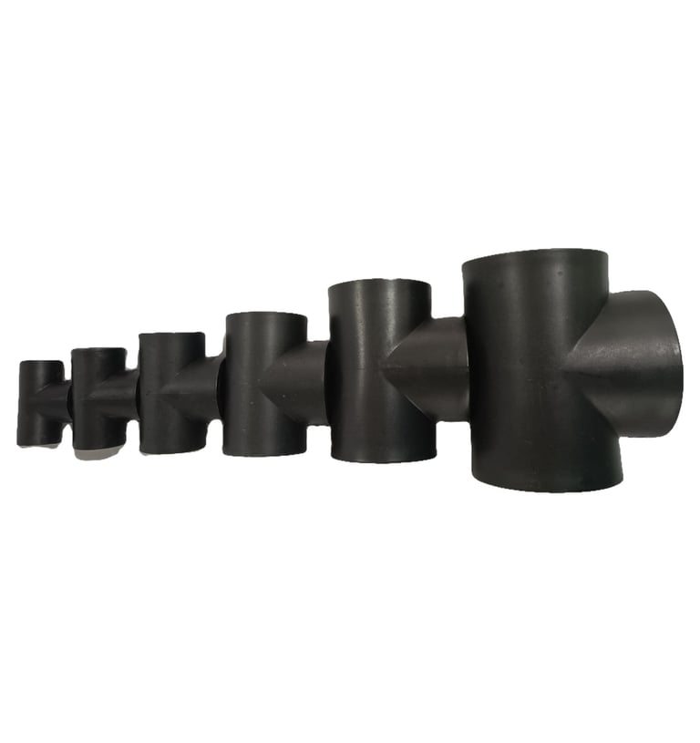 HDPE Tee Reducing Socket Fusion Joints are produced using injection moulding. The raw material, PE100-grade high-density polyethylene (HDPE), is joined to the HDPE pipe by socket welding.